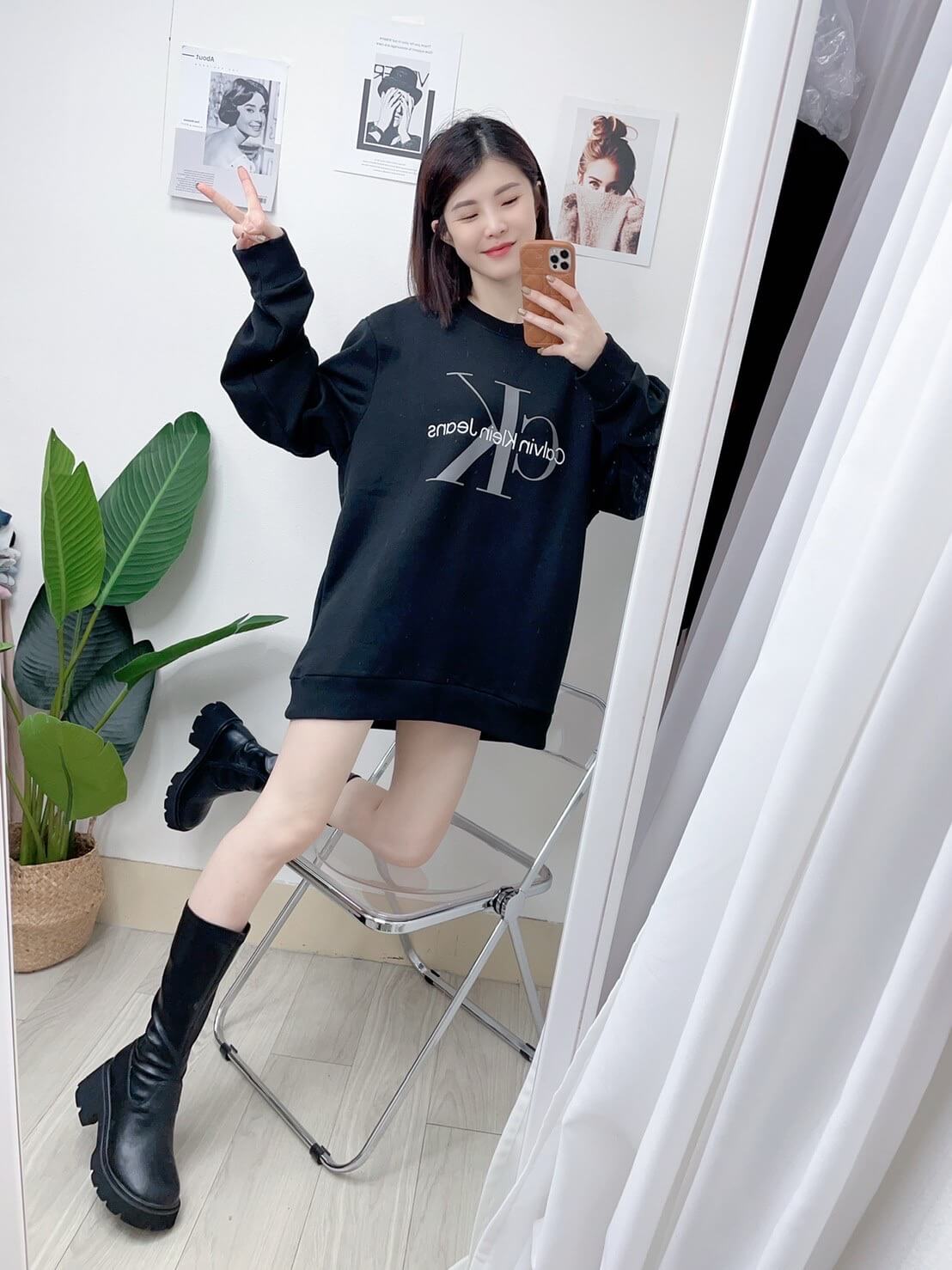 美版版偏大~oversize搭配瘦瘦靴真的超瘦