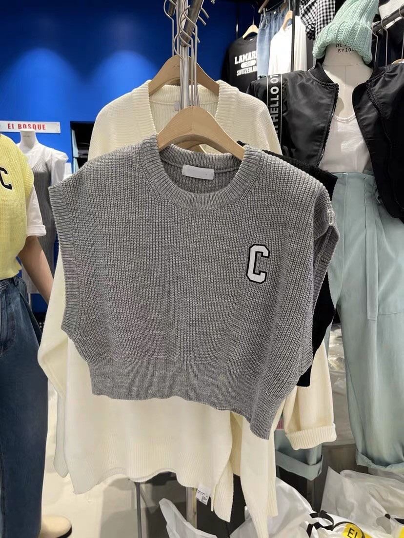 刺繡大C短版針織背心